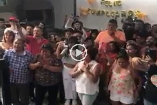 En el video, difundido por el medio local El Cronista de Jujuy, se puede ver cómo el líder del grupo de cumbia La Re Pandilla, Oscar Belondi, le regala una torta con forma de latas de cerveza mientras la banda toca el clásico “feliz cumpleaños”.