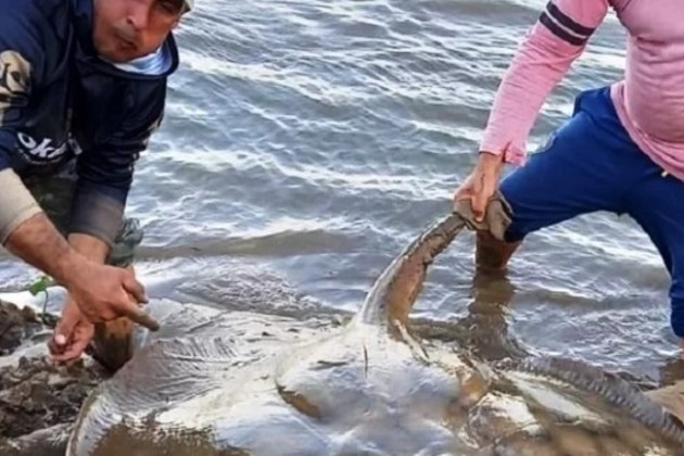 Un grupo de turistas capturó una enorme raya que está en peligro de extinción en el río Paraná en la localidad correntina de Esquina.