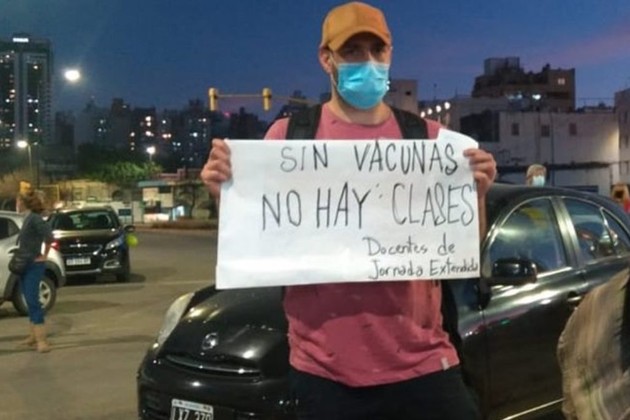 Gremios docentes, padres de alumnos y organizaciones políticas realizaron este lunes una caravana por el centro de la ciudad de Córdoba en reclamo para que se interrumpan las clases presenciales, que se reanudaron esta semana en toda la provincia en el nivel primario y en algunas localidades en el secundario.