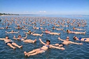Récord mundial en Córdoba: hacen una convocatoria masiva para flotar "haciendo la plancha" en la laguna Mar Chiquita
