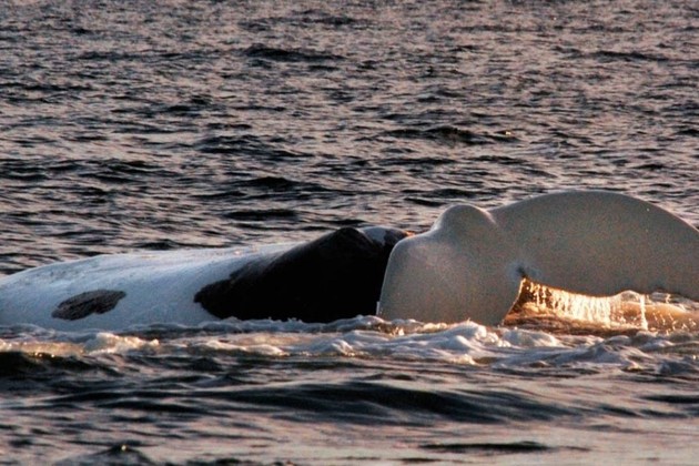 "Fue en esas circunstancias que la hembra dio un giro y se puso panza arriba, en el momento justo que estaba pariendo una cría morfo gris, es decir, de color casi blanco", relata el ICB.