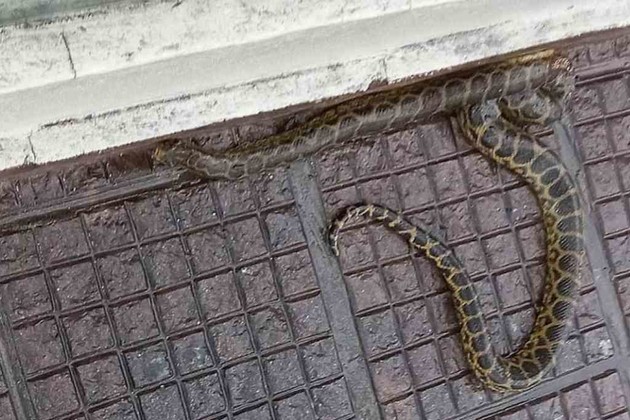 Con la intensa lluvia de este sábado por la mañana, apareció en plena costanera de la capital correntina, un ejemplar de boa curiyú. de gran tamaño y sorprendió a quienes pasaban por el lugar.