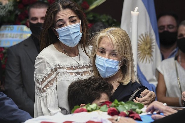Junto al féretro con el cuerpo de Menem (90) estuvieron sus parientes directos, como su exesposa Zulema Yoma (78), su hija Zulema María Eva (50), sus nietos Luca Bertoldi (16) y Malek Pocovi (8) -hijos de Zulemita- y otros familiares, allegados y colaboradores del exmandatario.