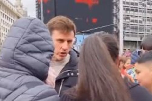 En sus redes sociales, el marido de Pampita publicó un video en donde se lo veía tomándose fotos y conversando con las mujeres que estaban en la marcha, hasta que un grupo reducido de personas se le acercó y le pidió que se retirara del lugar.