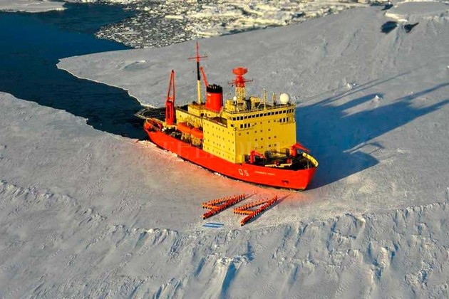La foto, que fue tomada desde uno de los helicópteros que acompañó al Irízar hasta la Antártida, fue subida a la red social Twitter en la cuenta de la Armada Argentina.
