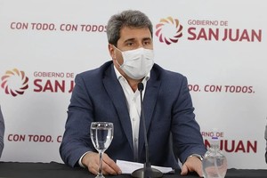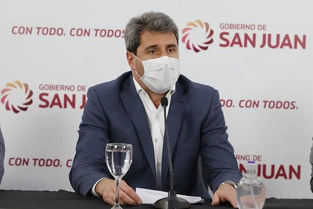 Durante el anuncio, el gobernador estuvo acompañado de la ministra de Salud, Alejandra Venerando; el secretario de Seguridad, Carlos Munisaga; la jefa de Epidemiología, Mónica Jofré y el jefe de la Policía de San Juan, Luis Martínez.