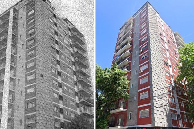 Cómo lucía el edificio al momento del incidente y así se ve actualmente. Crédito: @agustin_avenali