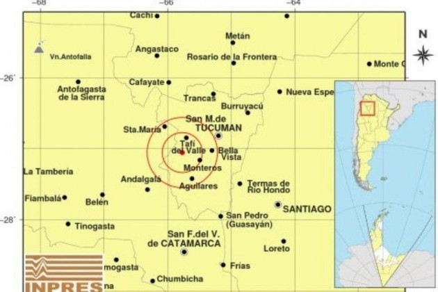 Según el Inpres, el movimiento tectónico ocurrió a 63 kilómetros de la capital, a 10 metros de profundidad.