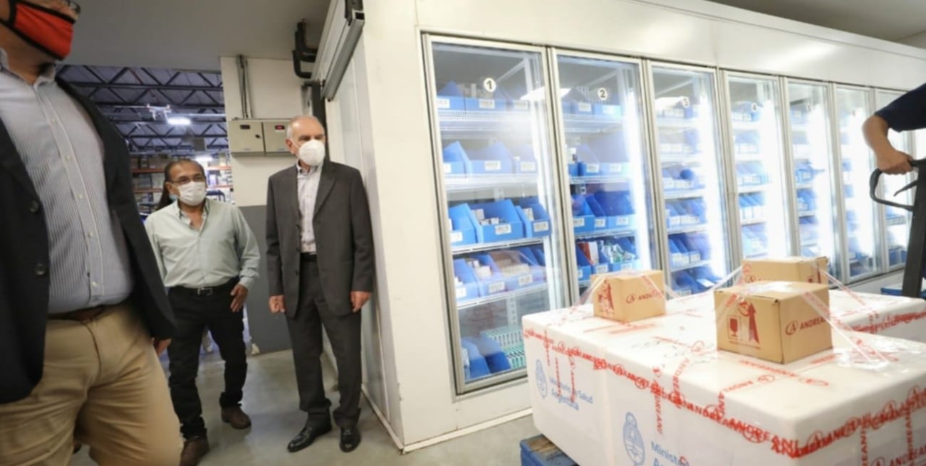 El camión de la empresa Andreani, que inició su recorrido en Ezeiza, depositó el cargamento en una droguería ubicada en Ruta Nacional N° 12 al lado del complejo Boca Unidos. Lugar donde permanecerán en cámaras de refrigeración hasta el martes, cuando inicie el proceso de vacunación.