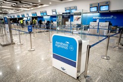 Personas esperan frente al área de registro tras la cancelación de vuelos en el marco de un paro de actividades de pilotos y aeronavegantes de la empresa Aerolíneas Argentinas. Créditos:Xinhua/Martín Zabala