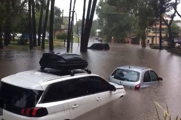 Así como ocurrió en Villa Gesell, en Pinamar las calles del centro están inundadas y el agua llega a la mitad de los autos, como se pudo ver en fotos y videos publicados en Twitter u otras redes sociales.
