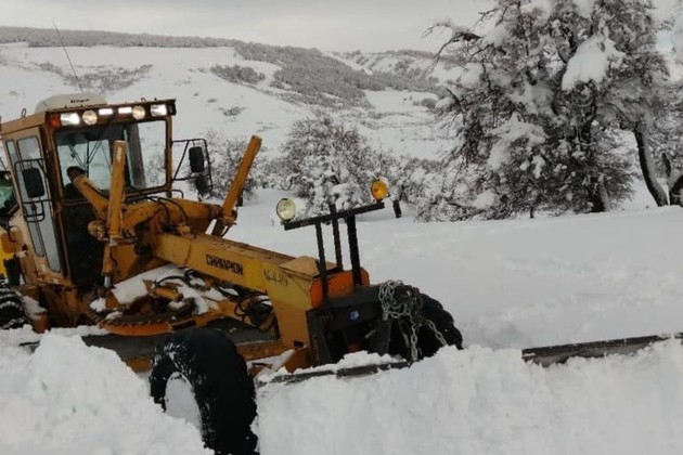 En la zona afectada por la ola de frío operan efectivos de Vialidad Nacional y provincial con maquinaria pesada para el despeje de las rutas bloqueadas por la nieve, con apoyo de la Subsecretaría de Protección Civil y la Dirección de Bosques que aportan recursos humanos y material para extraer los árboles caídos sobre la traza vial.