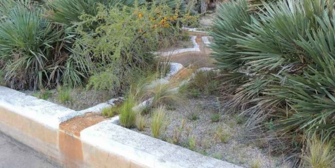 Se pueden distinguir las piletas completamente vacías y cubiertas de vegetación. También algunos caños y estructuras que solían pertenecer al complejo.