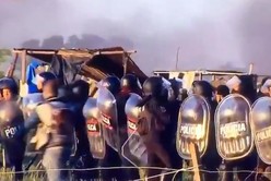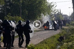 Por su parte, los efectivos derribaron casillas y cortaron los alambres con que se delimitaron las tierras ocupadas en el predio, mientras que el desalojo fue resistido por los ocupantes que, con piedras y palos, intentaron frenar el accionar policial.