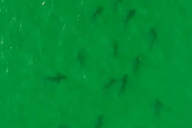 Más de cien tiburones bacota quedaron registrados bajo el agua en la costa de Río Negro y el hallazgo impactó tanto por su magnitud como por su rareza. La escena fue captada en el Golfo San Matías, donde un drone detectó una concentración inusual de ejemplares moviéndose en conjunto.