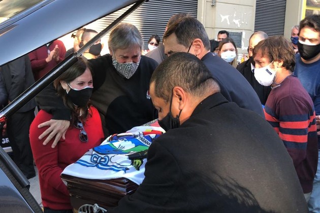 Entre aplausos, su familia cargó el cajón hasta el auto que depositará el cuerpo del exintendente de la capital, fallecido esta mañana, en el Cementerio Municipal, dentro del panteón de la familia.