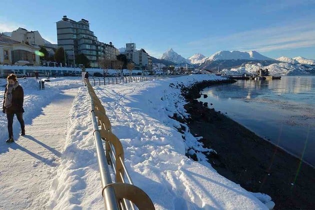 Los organizadores de esta iniciativa aprovecharon las inclemencias del tiempo, con nevadas de varios días consecutivos y frío intenso, para acondicionar como pistas de esquí de fondo a dos sitios emblemáticos del centro de la capital fueguina.