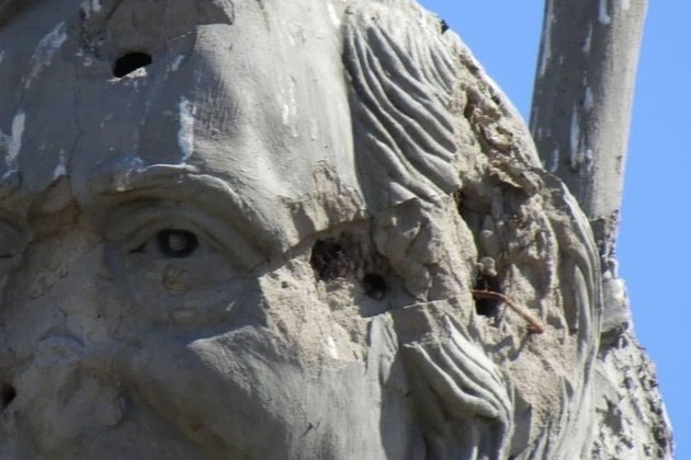 En las imágenes se observan agujeros en la cabeza de la estatua, que supera los cuatro metros de altura, y otra clase de roturas.