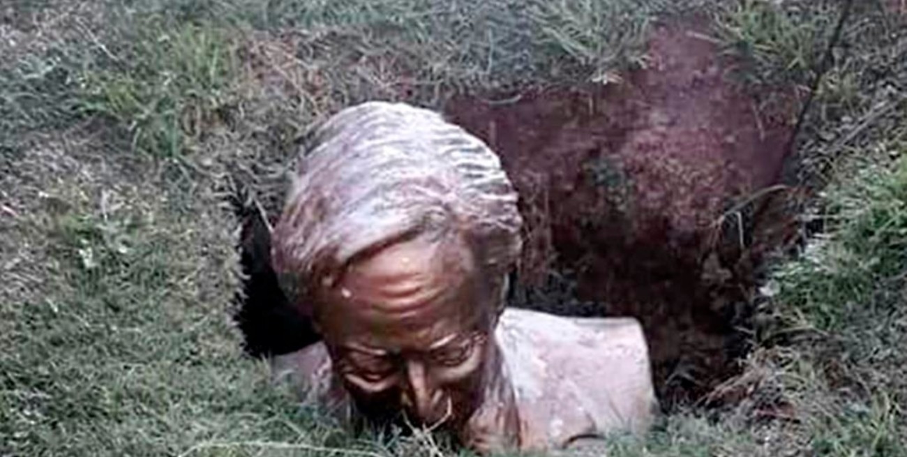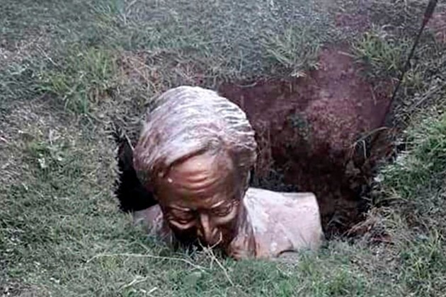 Un grupo de desconocidos atacó un busto del ex presidente Néstor Kirchner que estaba emplazado en la terminal de ómnibus de localidad bonaerense de Roque Pérez y luego lo enterró.
