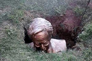 El busto fue encontrado este jueves enterrado a pocos metros del lugar donde había sido colocado en junio de 2015.