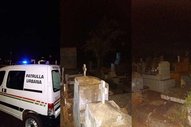 Inmediatamente ambos testigos llamaron a personal de la Patrulla Urbana Municipal, quienes inspeccionaron el cementerio pero no lograron hallar nada ni a nadie.