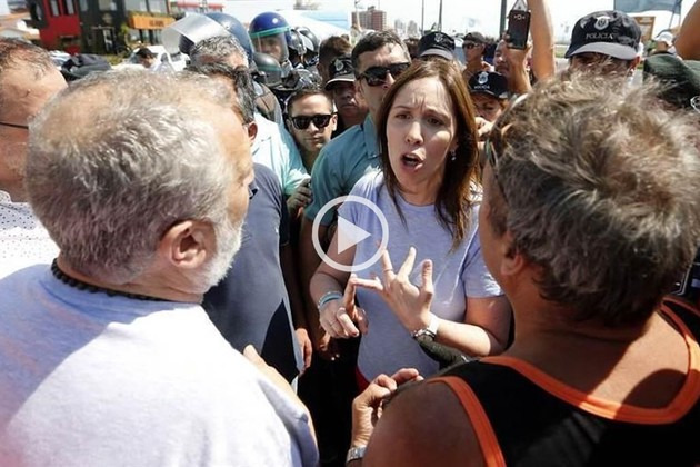 Un grupo de guardavidas que realizaba una manifestación en la ciudad de Mar del Plata se abalanzó frente a la camioneta de la gobernadora de la provincia de Buenos Aires, María Eugenia Vidal, cuando ésta salía este viernes de un acto de inauguración de un balneario público, lo que provocó que la mandataria se bajara del vehículo y los enfrentara.