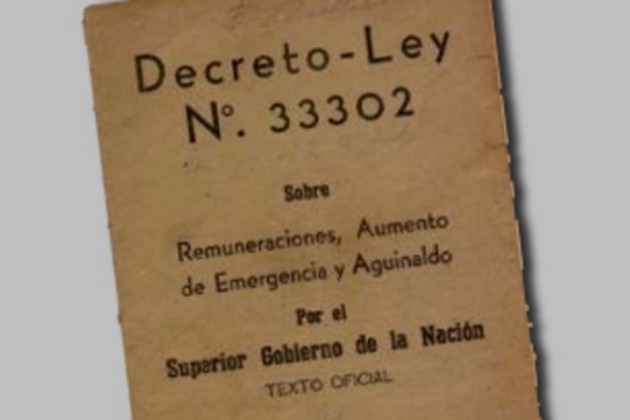 El Decreto-Ley N° 33.302/1945 fue dictado el 20 de noviembre de 1945, dando a luz al sueldo anual complementario correspondiente a todos los trabajadores del país.