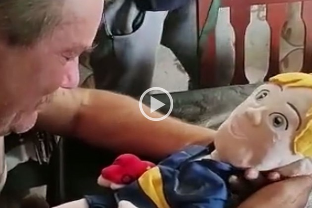 El simpático muñeco representa a un nene vestido con la camiseta de Boca y que, al apretar un botón, habla con la voz de Lucio. En el momento en el que el abuelo vuelve a escuchar al pequeño asesinado, se quiebra.