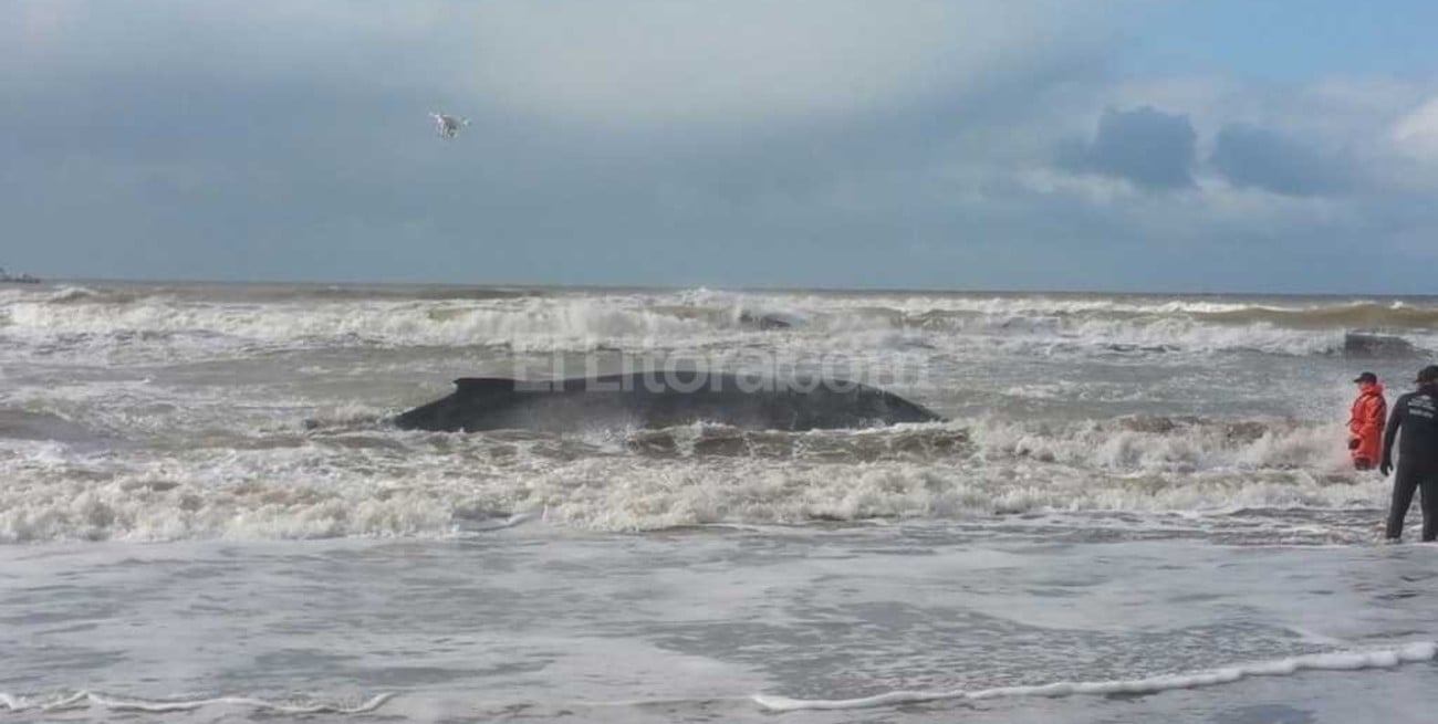 Según los especialistas en el lugar, la ballena mide entre 12 y 14 metros, y pesa una 10 toneladas.