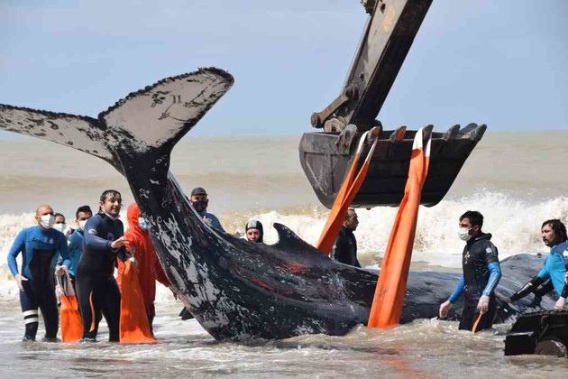 Martes 5 de octubre de 2021. Durante las últimas 48 horas se registraron dos inusuales varamientos de ballenas jorobadas (Megaptera novaeangliae) en la Provincia de Buenos Aires. La primera de ellas fue encontrada varada durante la mañana del domingo en las playas de la localidad balnearia de Nueva Atlantis, en el Partido de la Costa. El operativo de rescate se activó luego de que una vecina de esa localidad diera aviso a la Fundación Mundo Marino que pudo atender el llamado rápidamente. Enseguida también se sumaron funcionarios de la Secretaría de Desarrollo Sostenible y Ambiente del Partido de la Costa, Defensa Civil del Municipio, Prefectura Naval Argentina, Bomberos Voluntarios de Mar de Ajó, Guardavidas. En total, 30 personas ayudaron para que el rescate fuera exitoso.