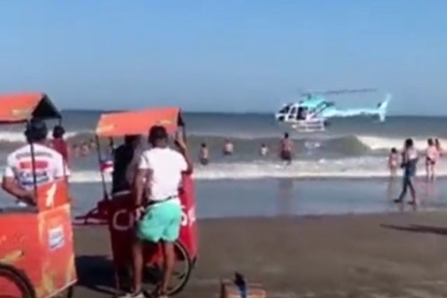 Video: un helicóptero descendió en plena playa de Villa Gesell y Sergio Berni estaba dentro