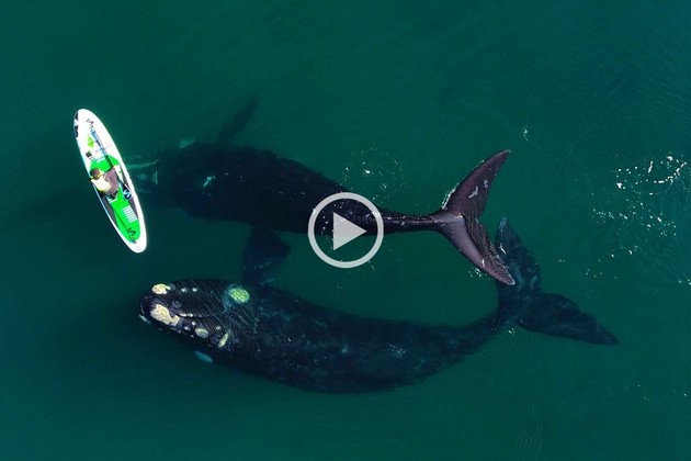 Durante este miércoles, se hizo viral en las redes sociales el video del encuentro de una ballena y un surfer en Puerto Madryn.