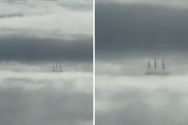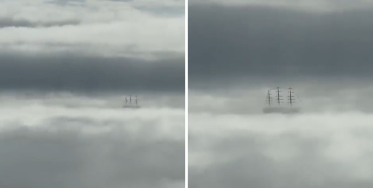 Llegaron al local aproximadamente a las 9 horas y a las 10, cuando se dispersó la niebla, observaron el espectáculo. “A lo largo de la mañana se fue despejando la neblina. Y pudimos ver cómo parecía que la fragata volaba”, aseguró la testigo.