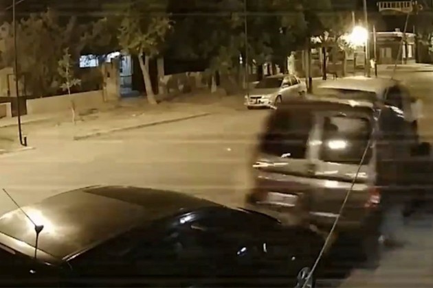 Según se ve en las cámaras, una camioneta Volkswagen Amarok, que circulaba a gran velocidad antes de las 2:00 horas aproximadamente, se cruzó de carril e impactó de frente contra la trompa de una camioneta. Fue tal la fuerza con la que la embistió al vehículo que lo levantó en el aire e hizo que éste quedará por encima de otro y chocara contra un tercer auto estacionado detrás.