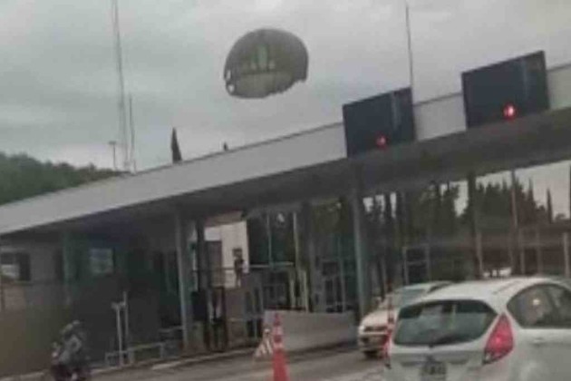 "Cae en el peaje. ¡Mirá! Cae otro allá" dice el autor de un vídeo filmado abordo de una camioneta que esperaba cruzar un peaje cordobés camino La Calera. La escena muestra dos paracaidistas que caían a metros de la cinta asfáltica, donde hubiese ocurrido una tragedia seguramente si aterrizaban sobre ella.