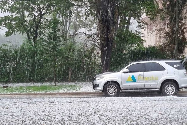 Según informó el Servicio Meteorológico Nacional, la zona se encontraba bajo alerta por tormentas fuertes con probabilidad granizo, lo que finalmente se cumplió.