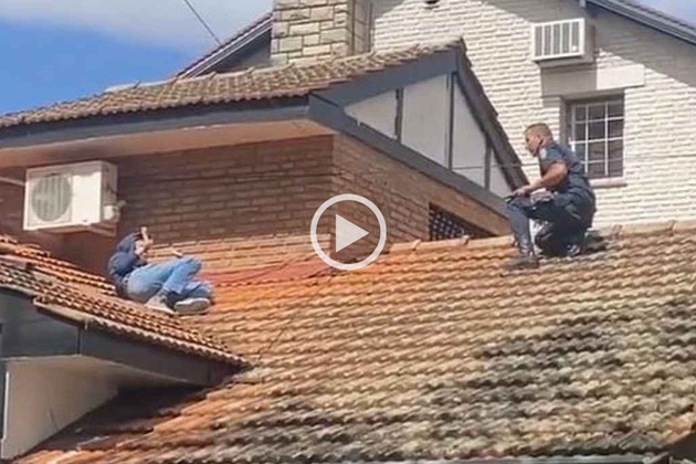 La insólita situación ocurrió en San Isidro y fue filmada por un vecino de la zona que aparentemente habría hecho la denuncia. En el primero de los videos se los ve a los policías recorriendo el perímetro de la casa por dentro y por fuera, hasta que uno de los efectivos decide subir al techo por la parte de atrás.