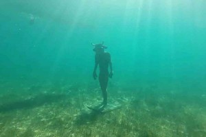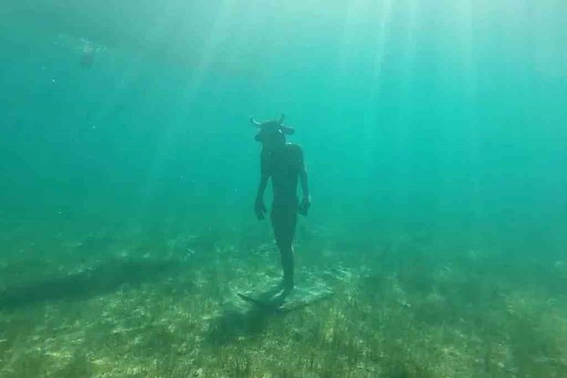 Apareció la escultura de un minotauro en el fondo del lago Mari Menuco.Crédito: LM Neuquén