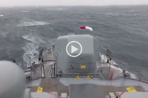 Posteriormente, la Armada Argentina publicó otro video en donde se ve el actuar del destructor ARA "Sarandí" frente a las adversas condiciones meteorológicas.