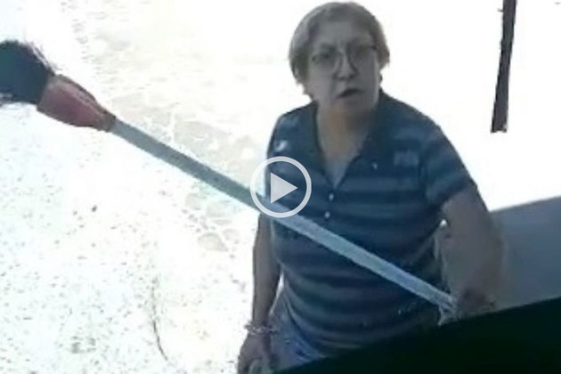 El video que se difundió por redes en las últimas horas fue filmado por el conductor que mostró cómo la mujer toma una escoba y empieza a pegarle el colectivo, en el vidrio, en momentos en que estaba estacionado en la zona conocida como Esquina del Sauce. Al parecer, la vecina se enojó porque el micro para en el frente de su domicilio.