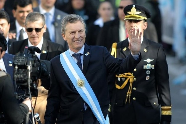 El Presidente junto al ministro de Defensa, Oscar Aguad, participa de la ceremonia en el Colegio Militar de la localidad bonaerense de El Palomar.