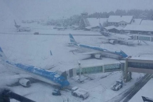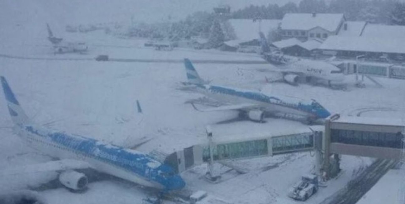 Si bien la estación aérea se encuentra en condiciones de operar, aún con nieve, la gran cantidad caída en muy poco espacio de tiempo esta madrugada hizo que las máquinas limpiadoras de pistas no dieran abasto, porque sigue nevando intensamente.
