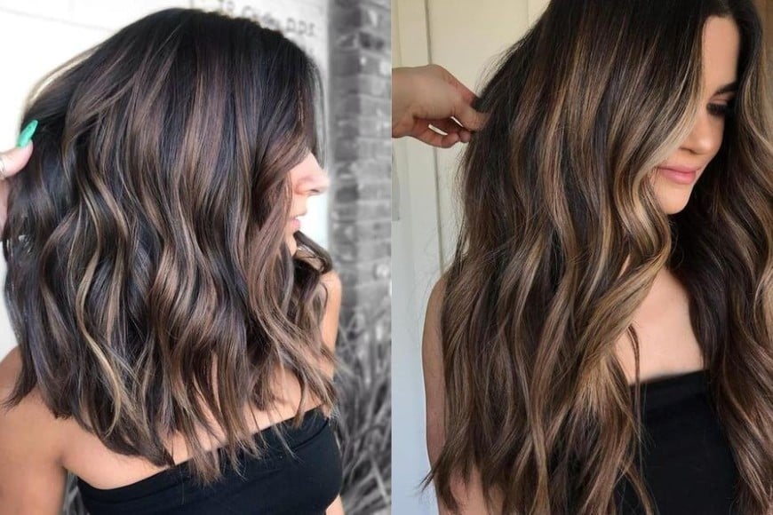 El balayage en tonos caramelo o avellana es ideal para cabellos oscuros.