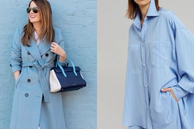 Durante los meses más fríos del año, atrévete con abrigos de colores. Un abrigo largo azul claro combina amplitud y comodidad con un ligero toque de elegancia. La camisa azul, un clásico versátil, se puede combinar con todo, desde jeans hasta piezas de sastrería. Los pantalones teñidos de azul claro son otra prenda imprescindible, perfectos para la oficina o una ocasión especial.