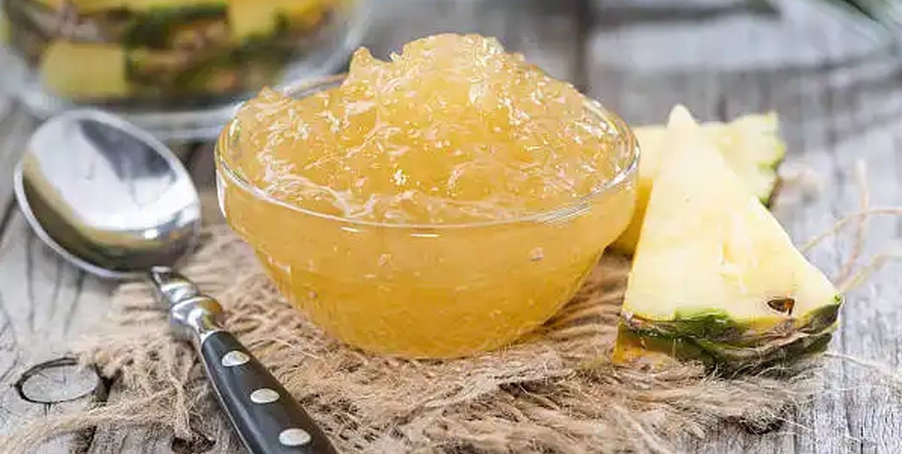 Para comenzar, pelar y cortar el ananá en pequeños trozos y colocar en una olla a fuego medio junto con el jugo de limón y la cucharada de pectina de manzana.