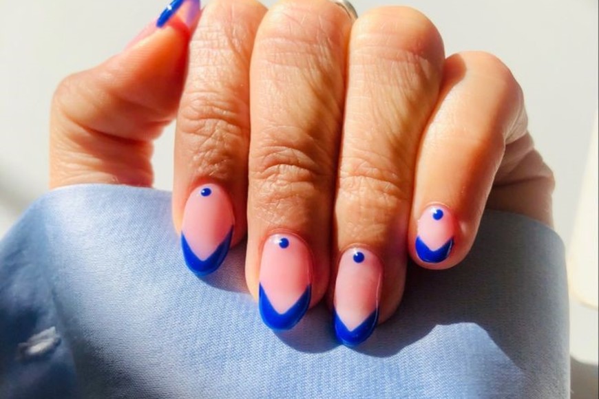 Diseños geométricos: agregar líneas, puntos o patrones en diferentes tonalidades de azul puede darle un giro creativo a tu manicura.