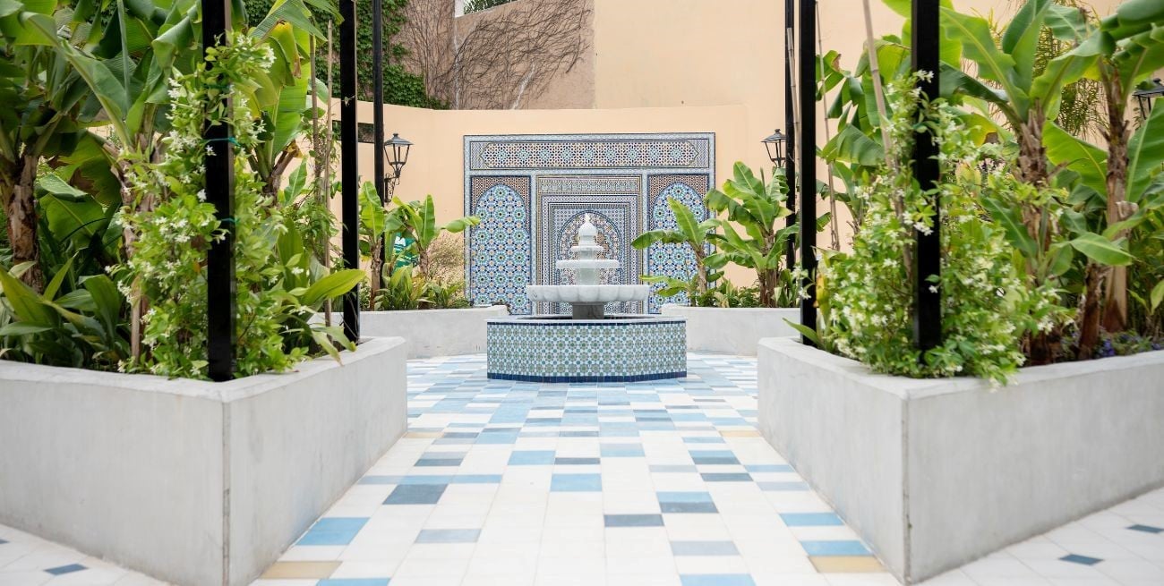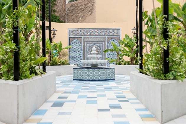 El Patio de Marruecos, con sus fuentes y mosaicos, ofrece un oasis urbano en Buenos Aires.