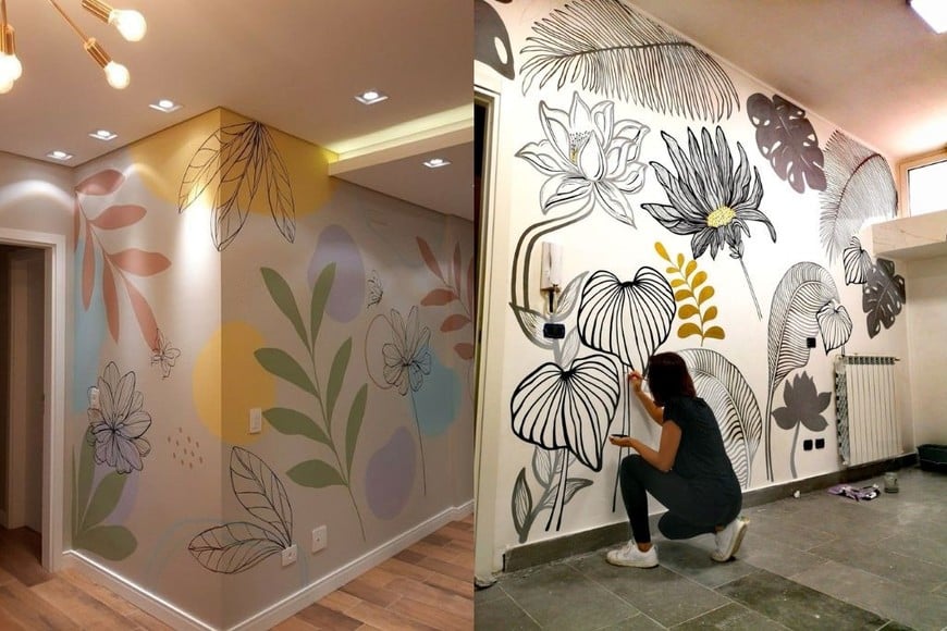 Los murales pintados a mano o los papeles tapiz con diseños llamativos son una excelente manera de agregar originalidad a tus paredes. Los murales pueden ser temáticos, como paisajes, motivos abstractos o patrones geométricos, y ofrecen una solución personalizada y artística.