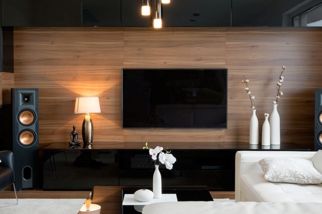 Además, el concepto de "home cinema" también ha cambiado. Las televisores ya no necesitan una gran estructura que los rodee; en lugar de eso, sistemas de sonido envolvente discretos, como los altavoces montados en el techo o las barras de sonido delgadas, proporcionan una experiencia de cine en casa sin sobrecargar el diseño del espacio.