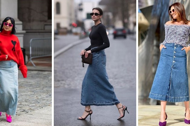 Por último, si querés lucir un look femenino, colorido y fashionista, las maxi faldas de jean también son una excelente opción. Elegí una camisa que te guste, ya sea un crop top, un corsé o una camisa de botones, y combínala con la maxi falda. Como consejo, asegúrate de usar zapatos y accesorios que sigan la misma paleta de colores de la prenda superior.
